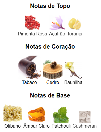 Base: Patchouli, Olíbano, Cashmeran, Âmbar Seco.