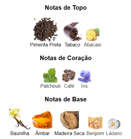 Notas de topo: Pimenta Preta, Tabaco e Abacaxi.