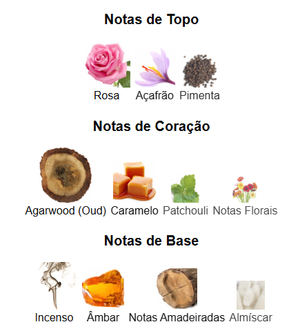 Corpo: Patchouli, Caramelo e Agarwood, Floral