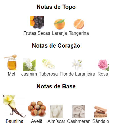 Fundo: Musk, Sândalo, Cashmere, Fava Tonka e Baunilha indiana.