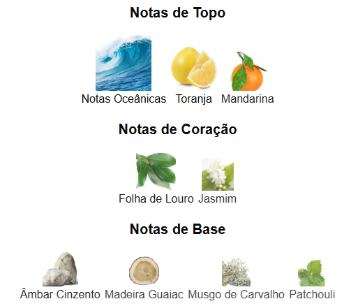 Fundo: Ambargris, Madeira de Guáiaco, Musgo de Carvalho e Patchouli ou Oriza.