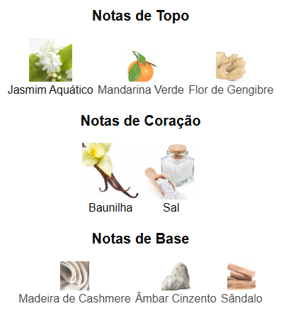 Topo: Tangerina Verde, Flor de Gengibre e Jasmim Aquático