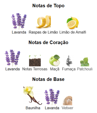 Fundo: Lavanda, Baunilha e Vetiver.