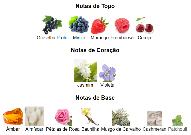 Inspirado na delicadeza das flores e na suavidade do açúcar, este perfume transmite feminilidade, elegância e sensualidade.