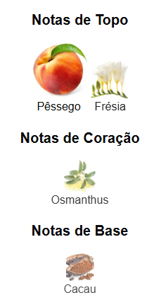 Boss The Scent for Her Hugo Boss Eau de Parfum é composto de 3 acordes que simbolizam atração, presente na combinação requintada de pêssego e frésia, sedução, trazida pelo tentador osmanthus, e vício, que vem da irresistível base de cacau torrado.