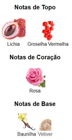 As Rosas, por sua vez, remetem à sedução e à elegância da mulher contemporânea, enquanto o toque de Vetiver e de Baunilha trazem a intensidade e o atrevimento necessários para despertar o fascínio daqueles que cruzarem o seu caminho. Aqui, o já conhecido "frasco stiletto" alcança novos patamares e impressiona ainda mais.