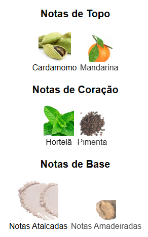 Entre o cítrico inicial e o amadeirado do fundo, você encontra o que ele tem de sedutor e misterioso, notas picantes e mentoladas. Perfeito para usar Em noites importantes e badaladas com sedução e elegância e conquista todos ao redor com sua exclusividade.