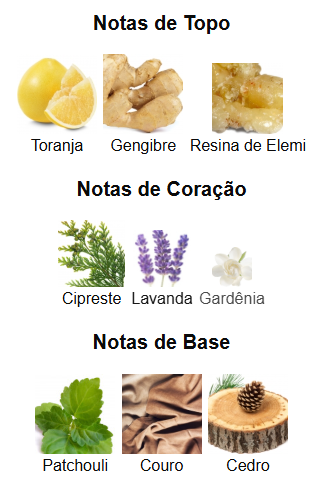 Os elementos da fragrância foram cuidadosamente selecionados para proporcionar uma combinação única que transmite confiança, liberdade e conexão. A composição equilibra frescor e profundidade, resultando em um aroma que se adapta facilmente a diferentes momentos do dia, desde encontros casuais até eventos mais formais.